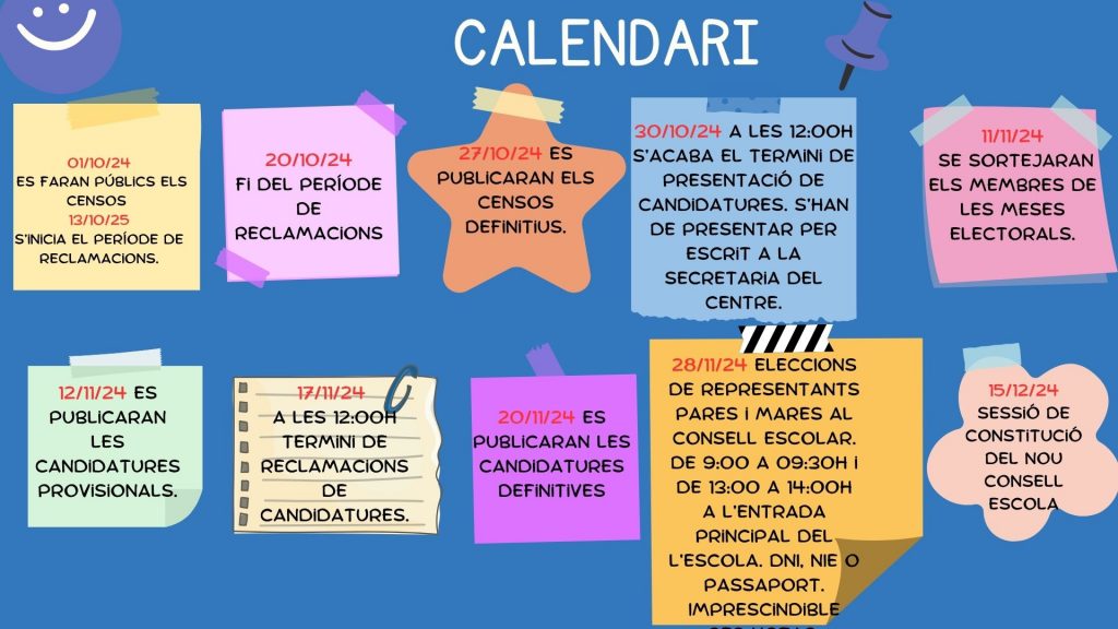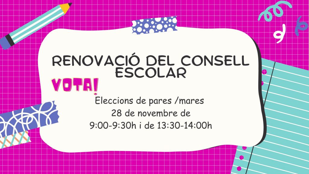 - 30 de novembre: eleccions representants dels pares i mares, al centre, de les 9:10 a 10 i de 13:30 a les 14:00